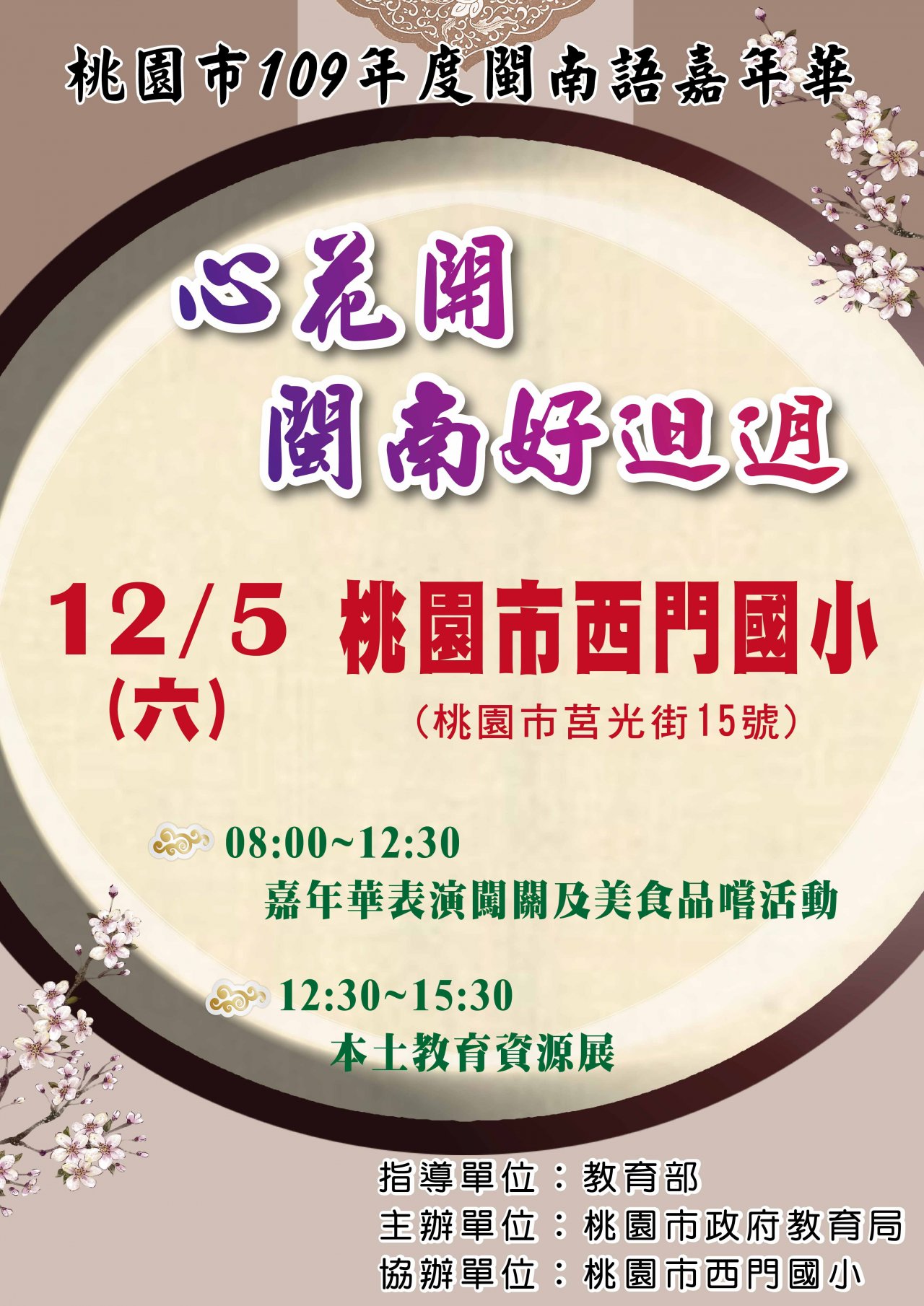(二) 辦理時間及地點:109年12月5日(星期六)上午8時於西門國小辦理。