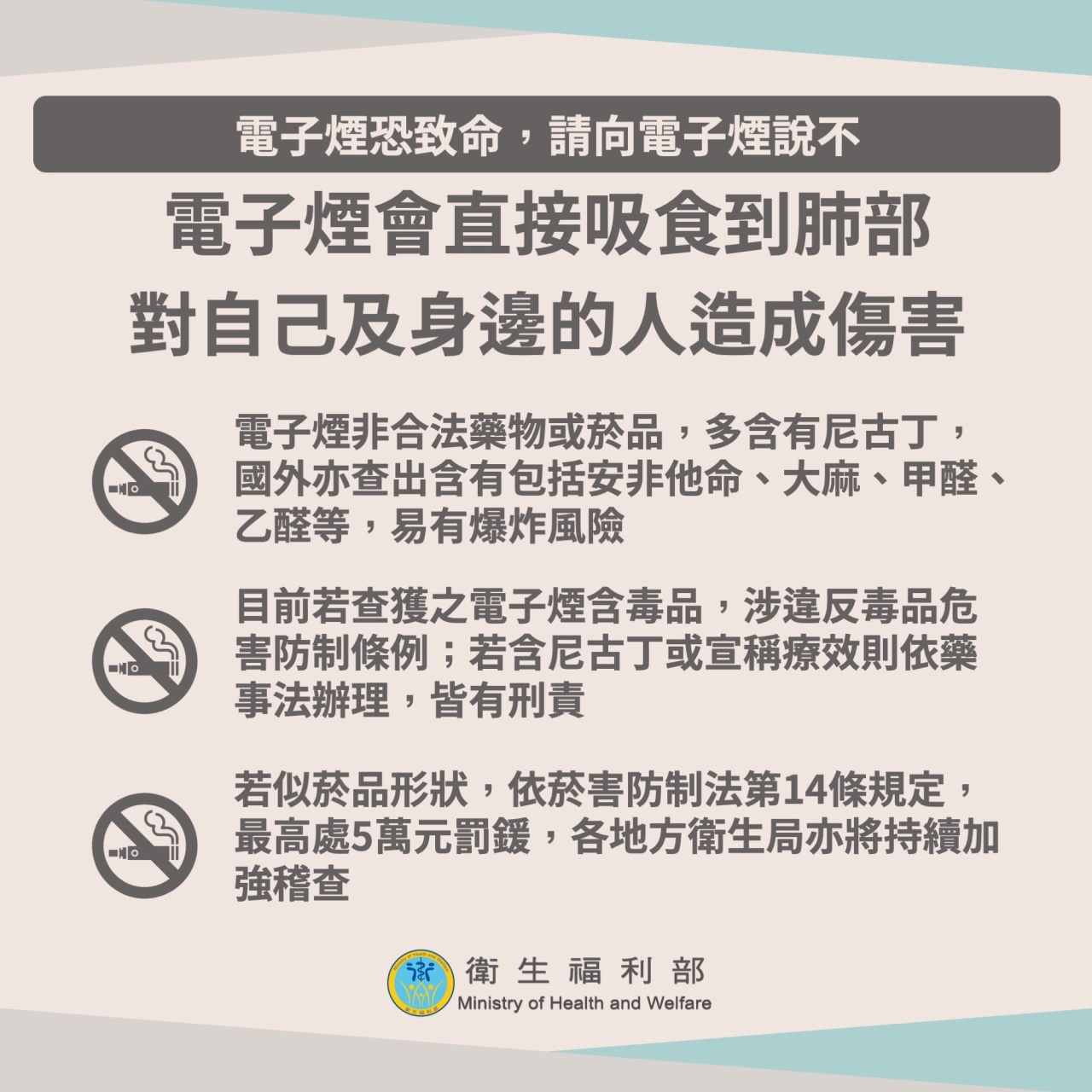 三、電子煙及菸品加熱器危害宣導資料如下: