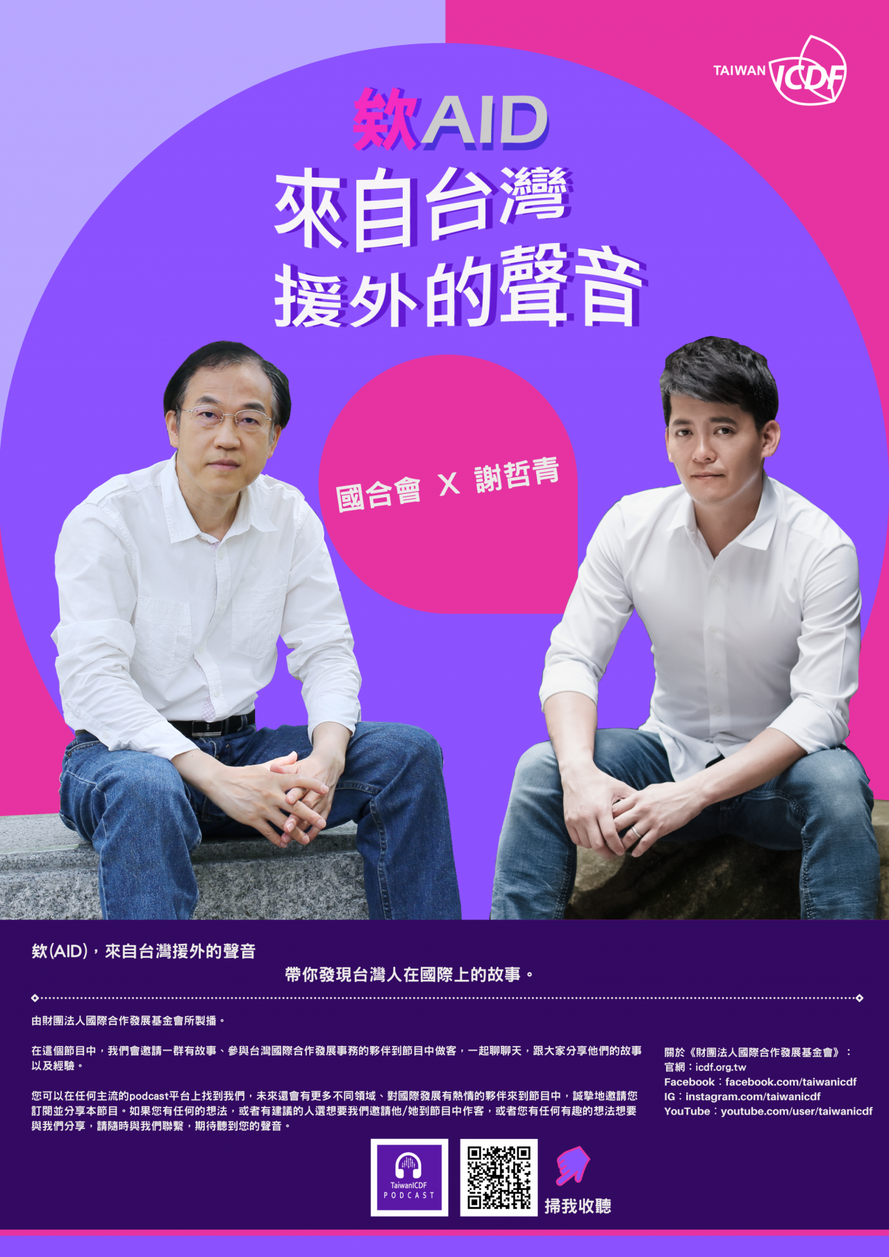 近年來該會積極以各種形式與大眾進行溝通,透過網路平台與民眾分享我國對外援助的故事。隨著新型態數位媒體Podcast所掀起的聲音浪潮,該會推出「欸(AID),來自台灣援外的聲音」Podcast節目,由知名主持人、作家謝哲青與該會人員搭檔主持,希望藉由聲音進一步提升民眾對我國援外業務的瞭解與認同。目前節目(連結:https://is.gd/rBL13N)已播出4集。
