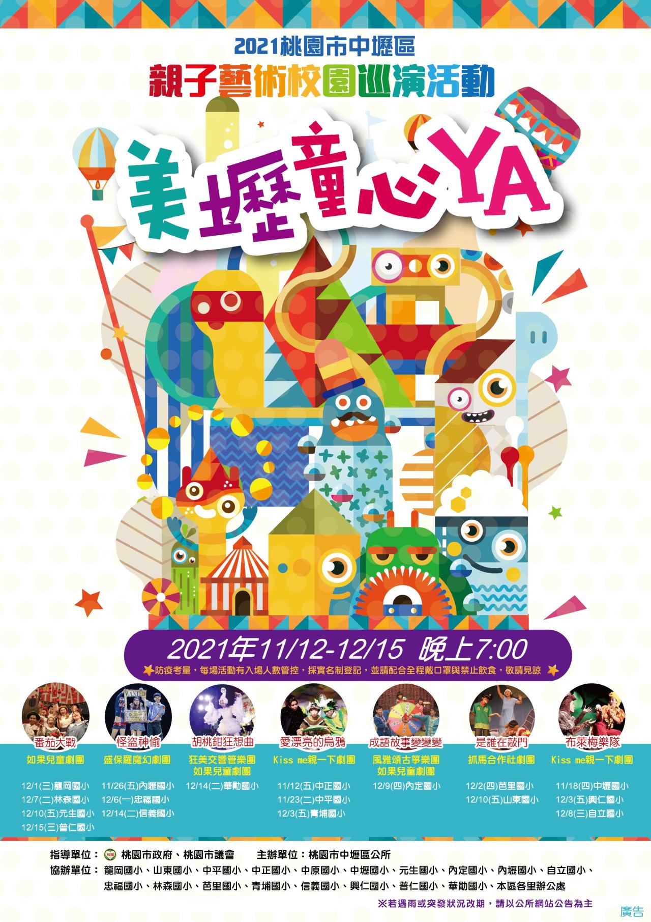 「2021桃園市中壢區親子藝術校園巡演」活動安排,詳如附件 歡迎踴躍參與