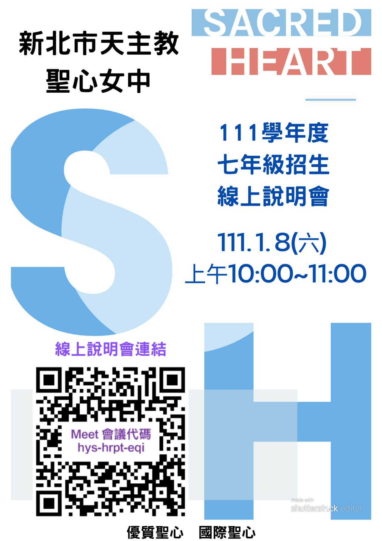 新北市私立聖心女子高級中學1月8日辦理111學年度七年級招生線上說明會。