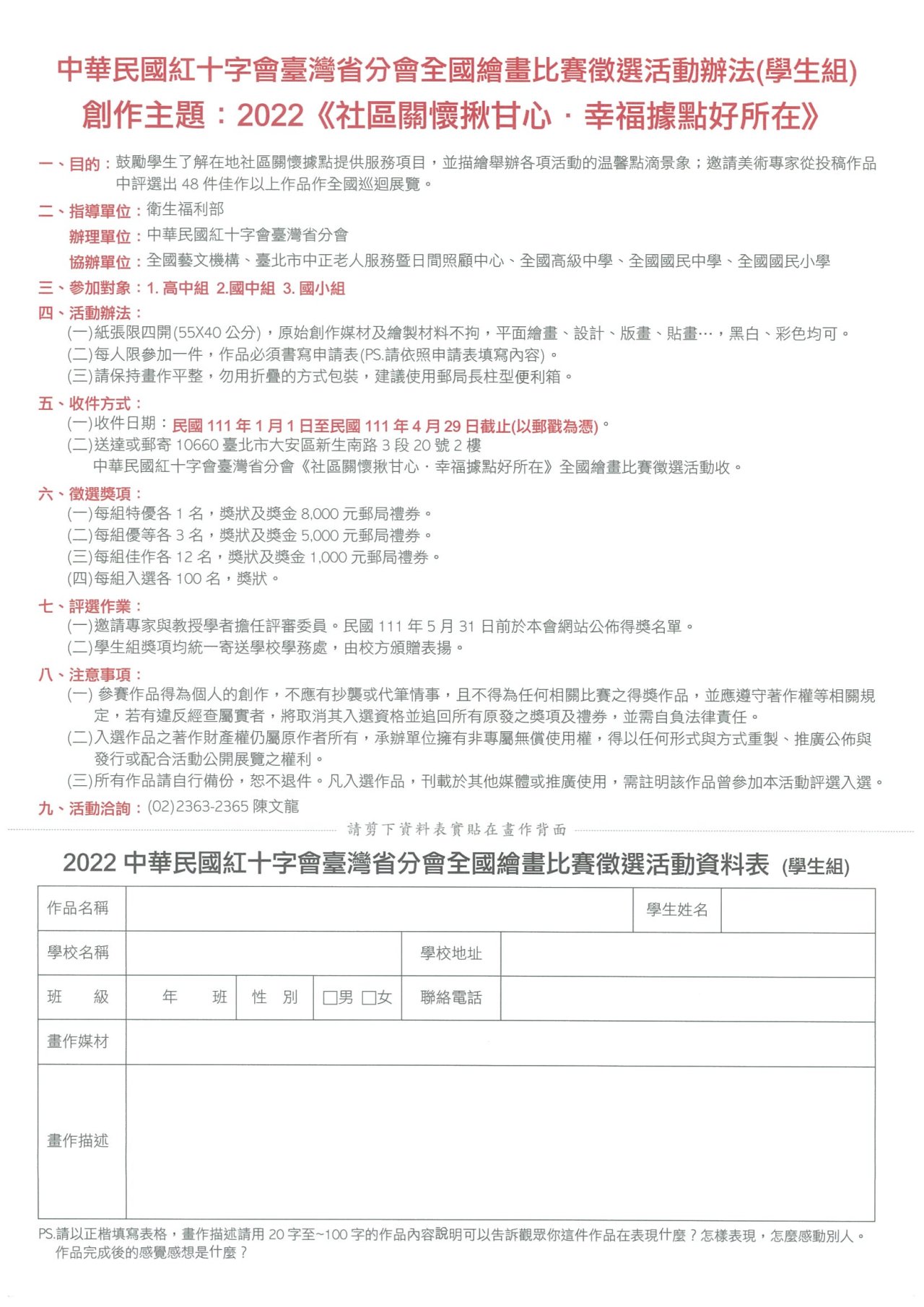 紅十字會繪畫比賽創作主題「社區關懷揪甘心‧幸福據點好所在」