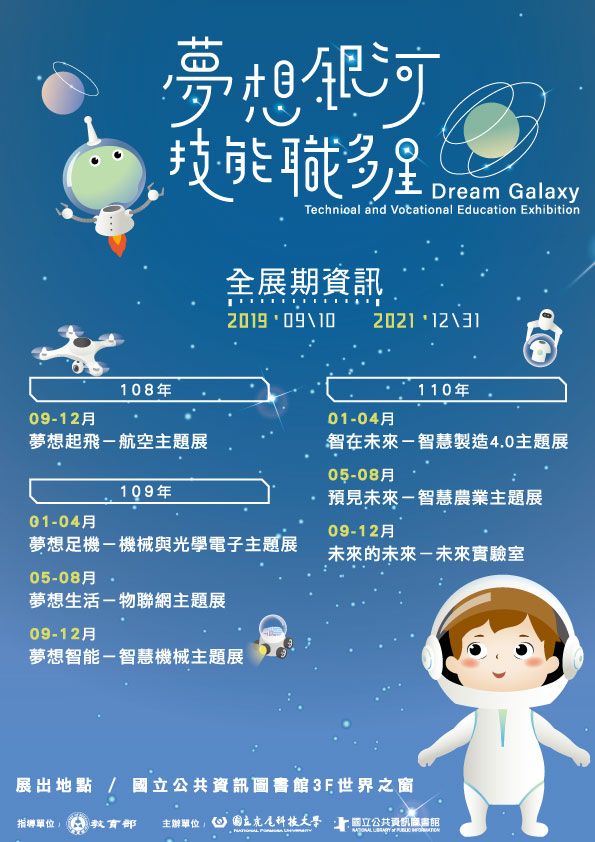 (一)展出時間:總展期至110年12月31日止,每4個月更換不同展出主題(如附件所示),現展出「夢想起飛航空主題展」(展期至108年12月29日)。