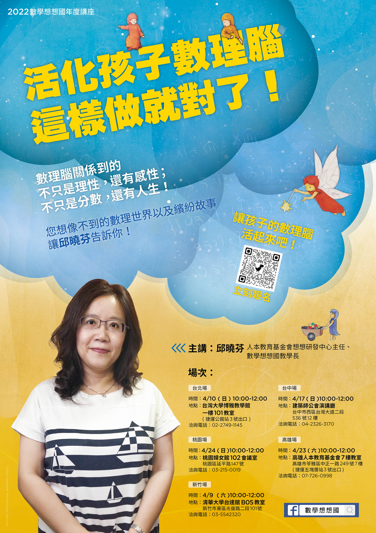(一)時間:111年4月24日 (週日) 上午10-12時 (二)地點:桃園婦女館102會議室 (桃園區延平路147號) (三)對象:家長、老師、關心數理教育的社會大眾 (四)費用:免費 (五)報名網址:https://pse.is/3zwvkx