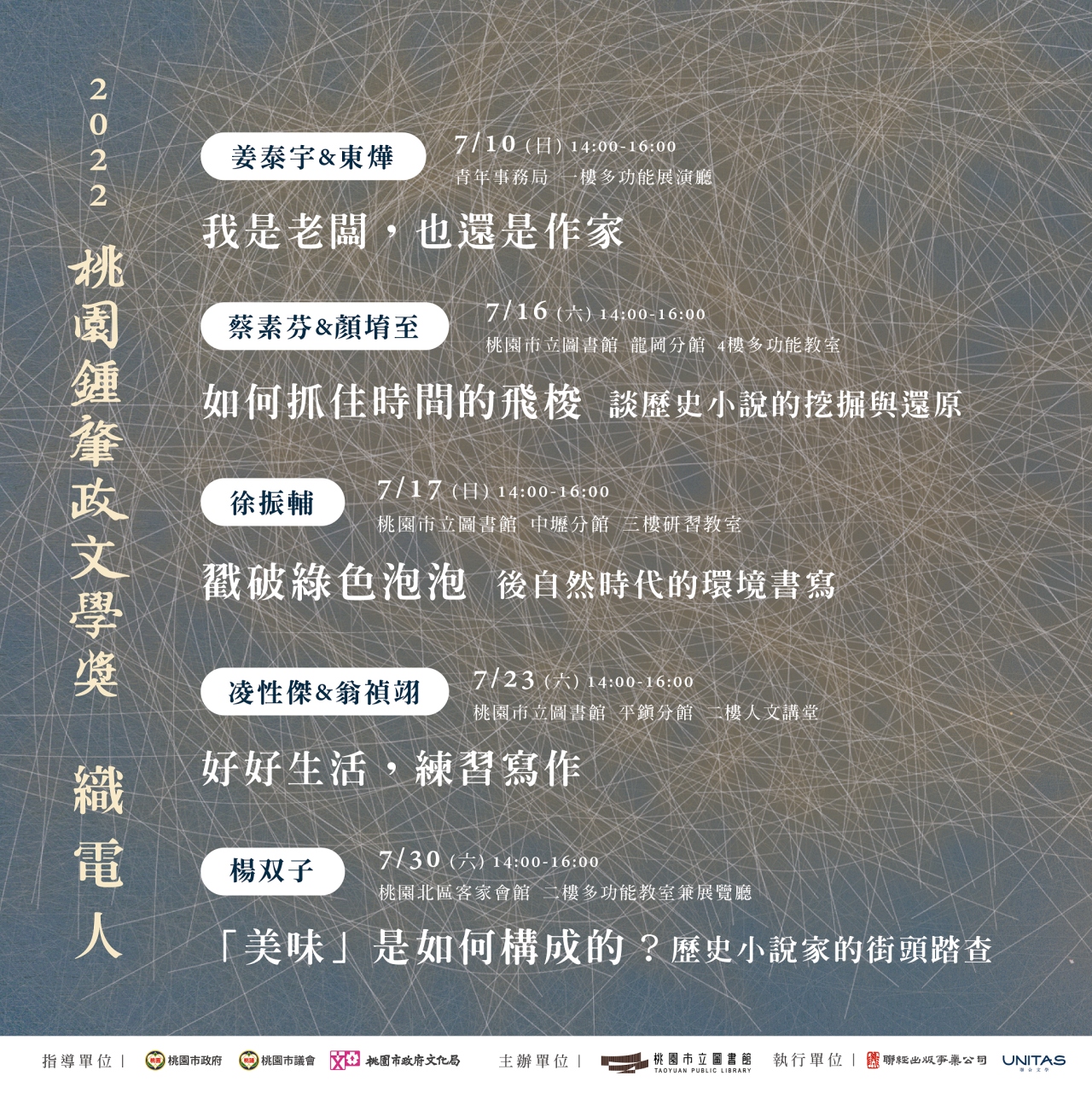 三、 隨函檢附7月份活動宣傳及徵件倒數海報,並請連結本館官網(網址:https://literature.typl.gov.tw/)協助宣傳。