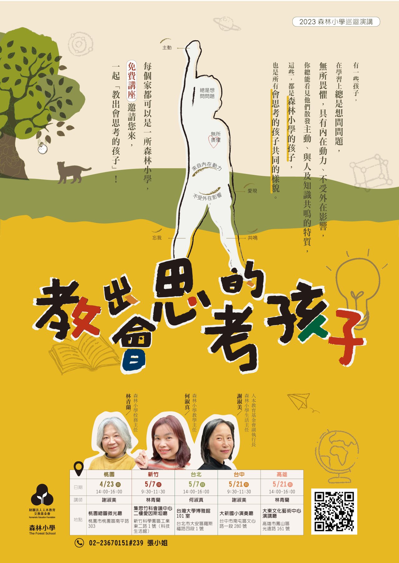 轉知桃園市立圖書館「教出會思考的孩子-2023森林小學巡迴演講會」活動