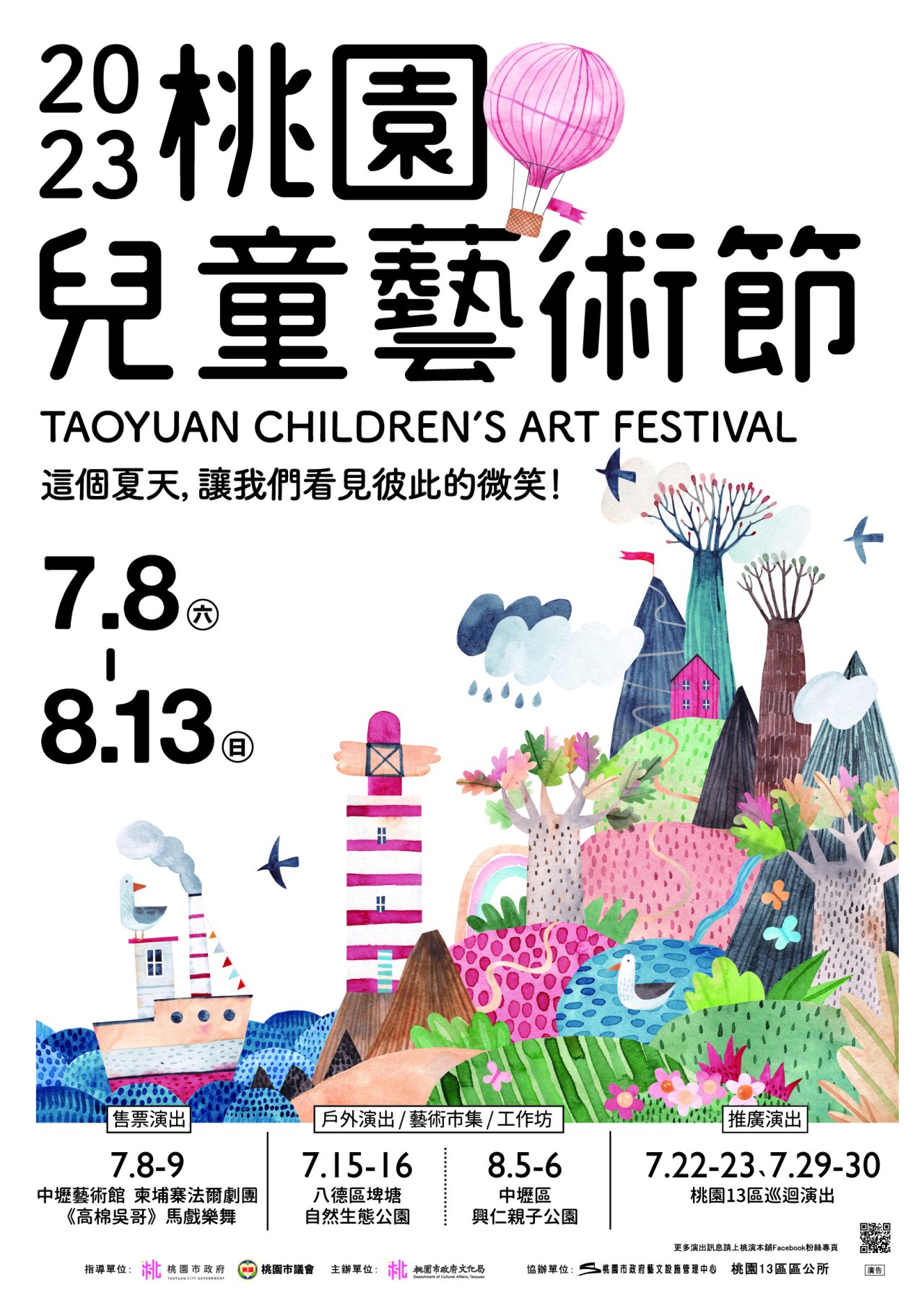 本局為推廣兒童藝術啟蒙與在地藝文紮根,規劃辦理「2023桃園兒童藝術節」,活動內容包含劇場售票親子節目、戶外親子演出及兒童市集活動、13區推廣演出、在地藝文好戲等,於112年7月8日(六)至8月13日(日)於桃園多區辦理。