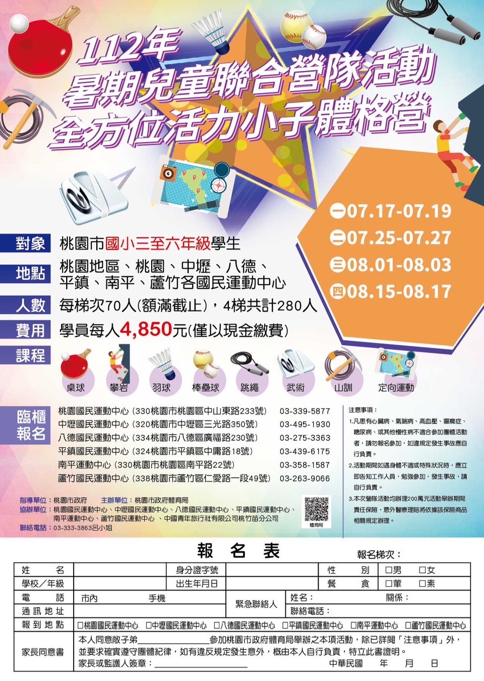 桃園市國民運動中心暑期兒童聯合營隊」活動資訊