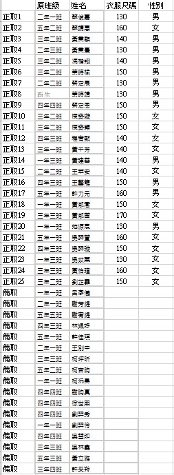 如正取名額放棄將依性別及身高相符者遞補(配合服裝)