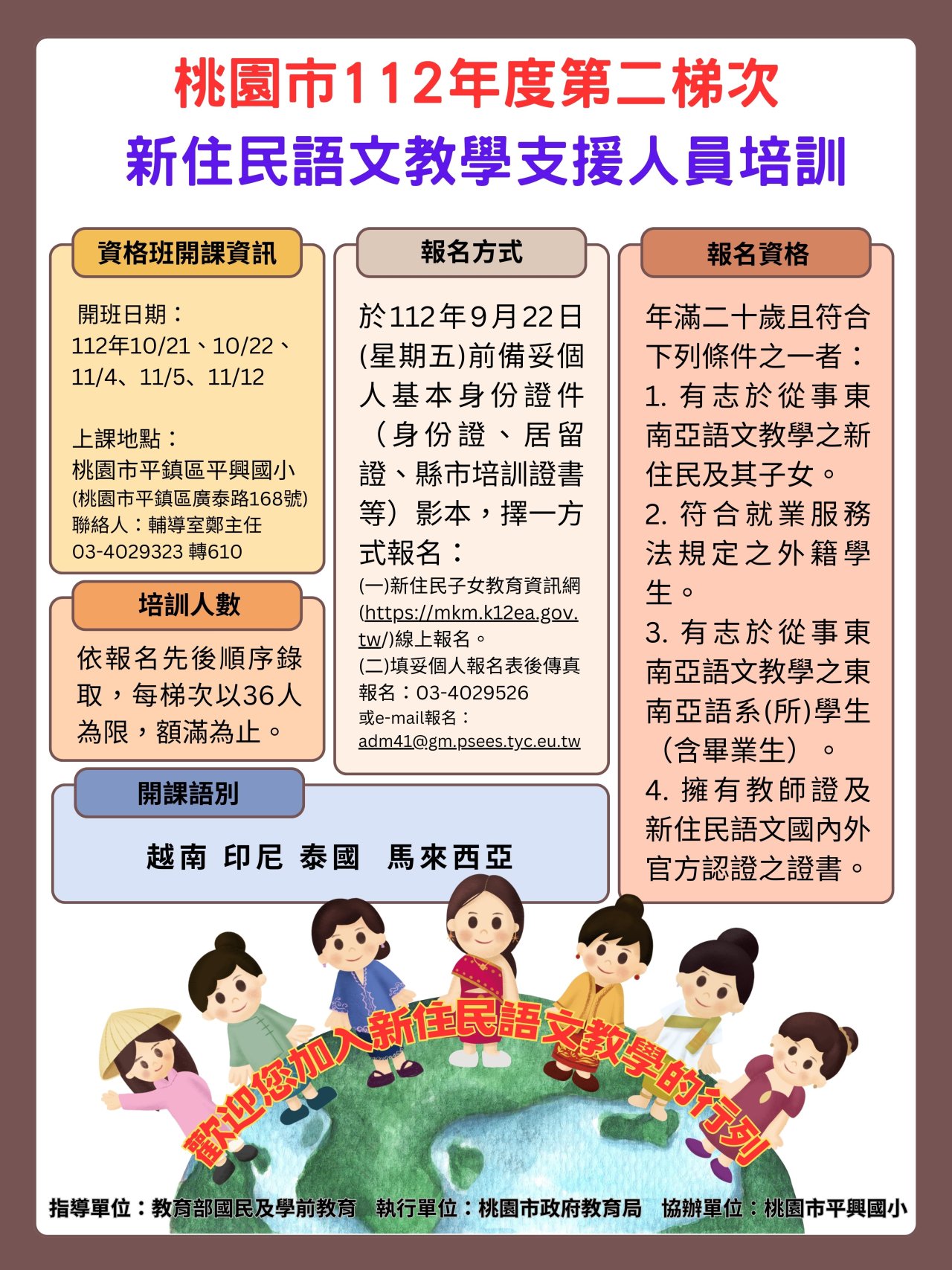 | 三、 | 倘有培訓相關問題,請逕洽平興國小窗口:鄭主任,電話:(03)4029323分機610。 |