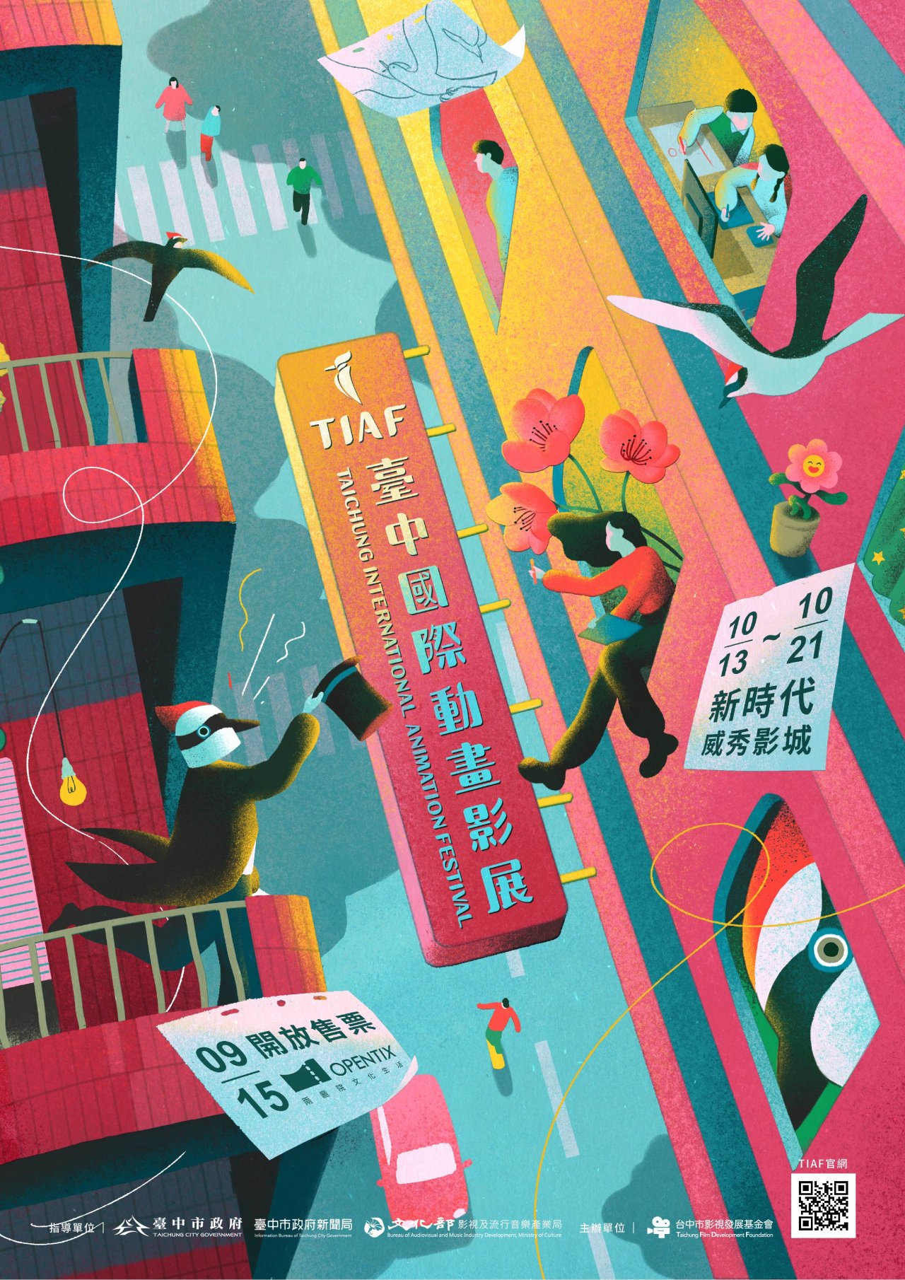 二、 旨揭影展以「光影之間」為主題,訂於112年10月13日至21日假臺中大魯閣新時代威秀影城舉行,將放映來自全世界133部精彩動畫作品,並由世界首映臺灣動畫《妖怪森林》及臺灣首映法國動畫《琳達想吃雞!》雙開幕片揭開序幕,閉幕片為世界首映日本動畫《火之鳥:回憶中的花》,並自9月15日中午12時起於OPENTIX售票系統正式開賣,預購票可抽獎日本來回機票乙張。