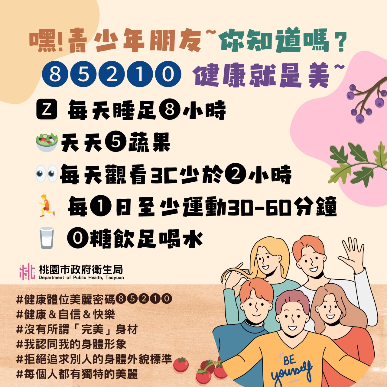 (一) 活動網址:桃園市社區營養推廣中心Facebook專頁「發現你的健康之美」抽獎活動(https://reurl.cc/bldREy)。
