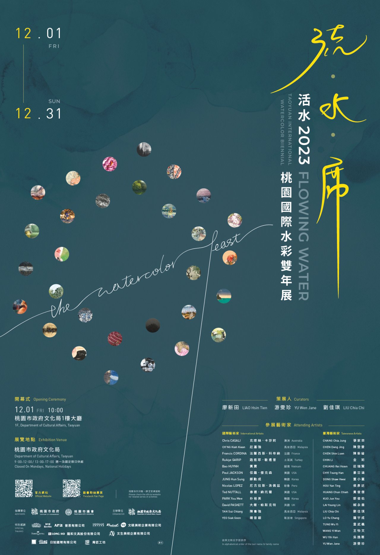 一、 本屆展覽以「流.水.席」為主題,匯聚了來自秘魯、澳洲、美國、英國、法國、土耳其、新加坡、馬來西亞、越南、韓國等國際13位及臺灣17位水彩名家,總計展出114件精彩創作。