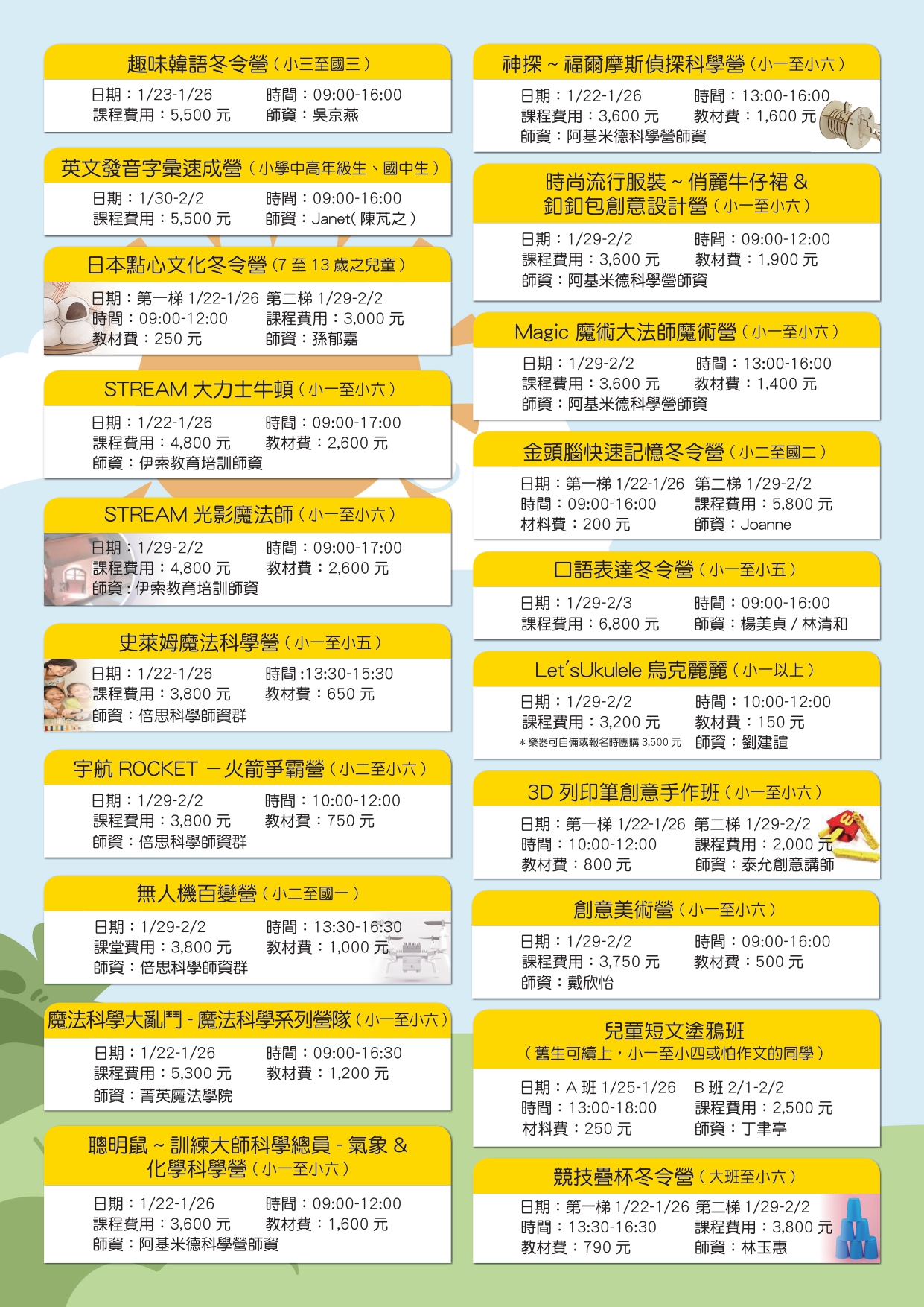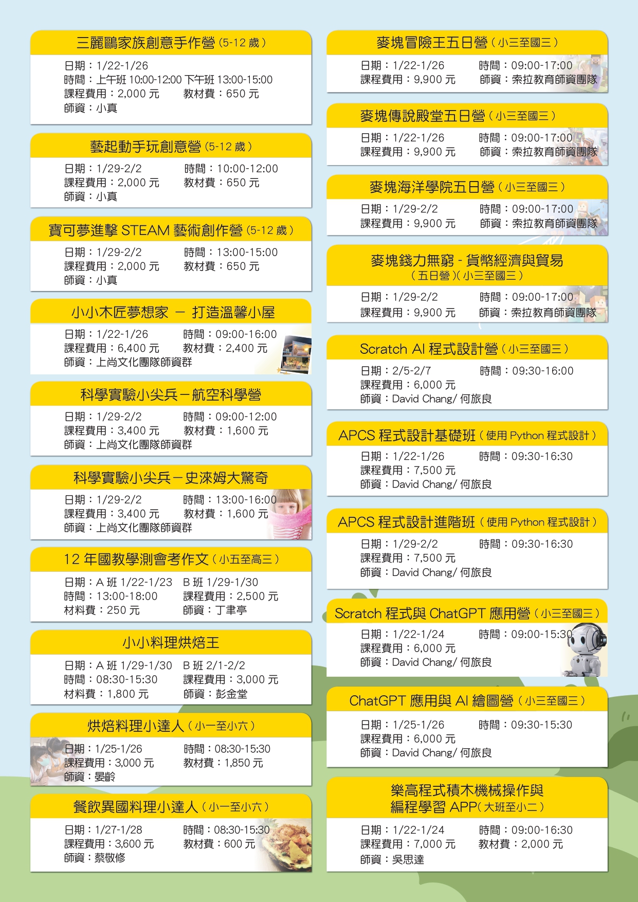 (三) 多門優惠:個人單次報名2門(含以上)營隊課程。