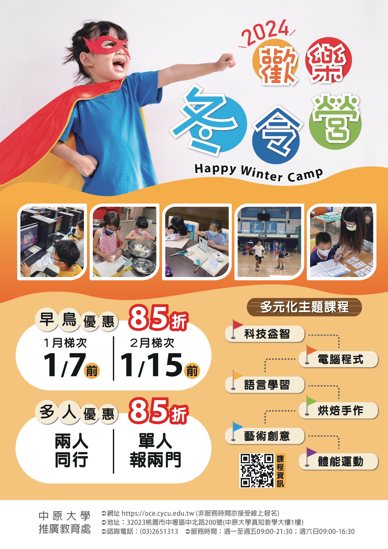 一、 為提倡兒童多元化之學習體驗,本校推廣教育處開設旨揭系列課程,請鼓勵貴校學生踴躍參加。