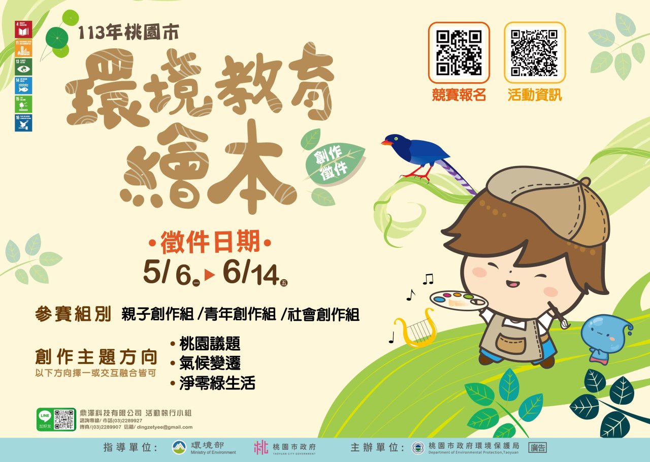 主旨:    有關本府環保局辦理「桃園市113年環境教育繪本創作徵件」一案,請轉知所屬並鼓勵踴躍參加,請查照。
