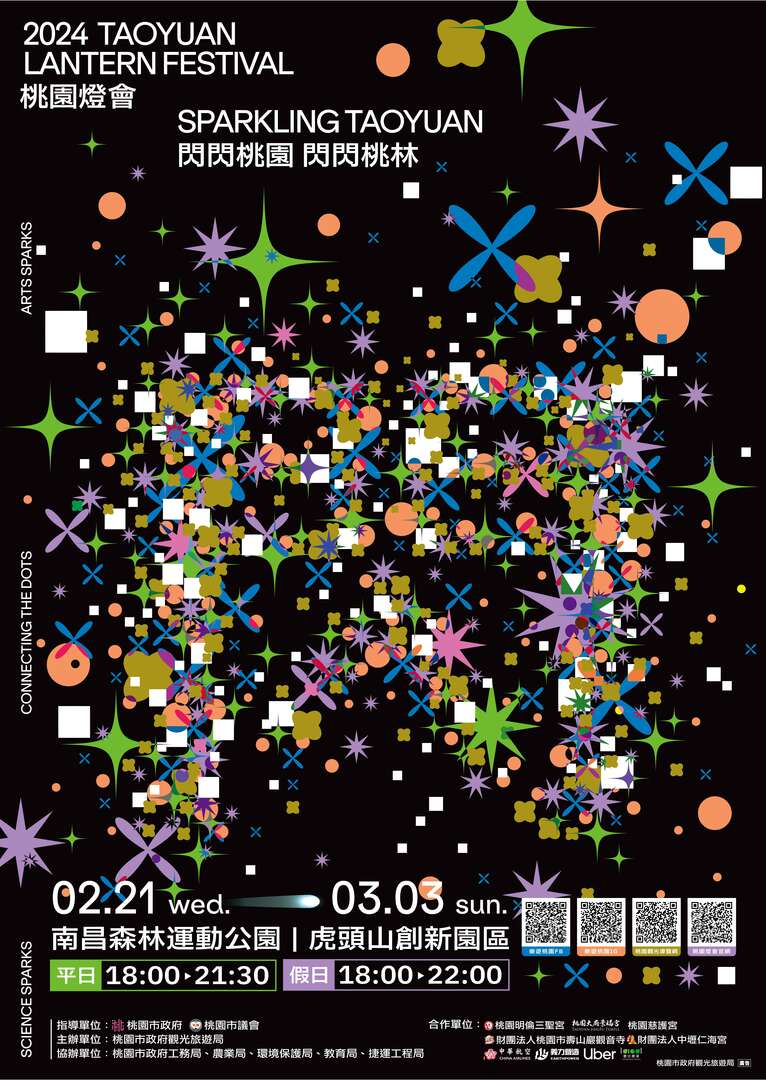 說明: 一、 依據桃園市政府觀光旅遊局113年2月2日桃觀旅字第 1130001252號函辦理。 二、 旨揭燈會將於113年2月21日至3月3日於虎頭山創新園區及南昌森林運動公園舉辦。 三、 為擴大活動宣傳效果,請貴校協助張貼活動海報(如附 件),並利用跑馬燈自即日起至 3月3日宣傳,文字內容建議如下:「2024桃園燈會2/21-3/3在虎頭山創新園區及南昌森林運動公園,還有限量小提燈陪您歡慶元宵節。」(字數可依實際需求調整)。