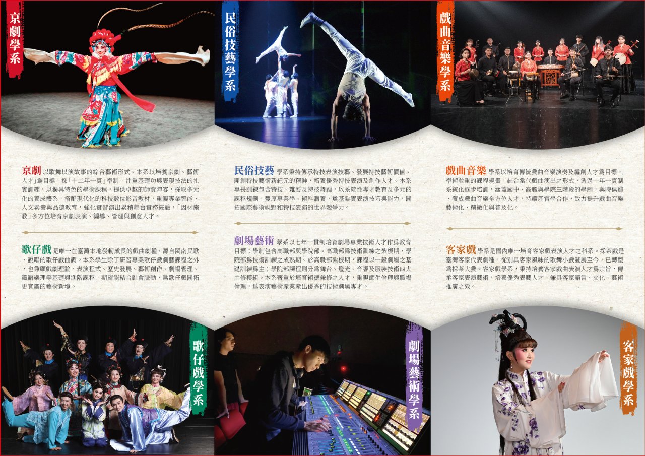 | 1、 | 招生科別:京劇科、民俗技藝科、戲曲音樂科、歌仔戲科、客家戲科。 |