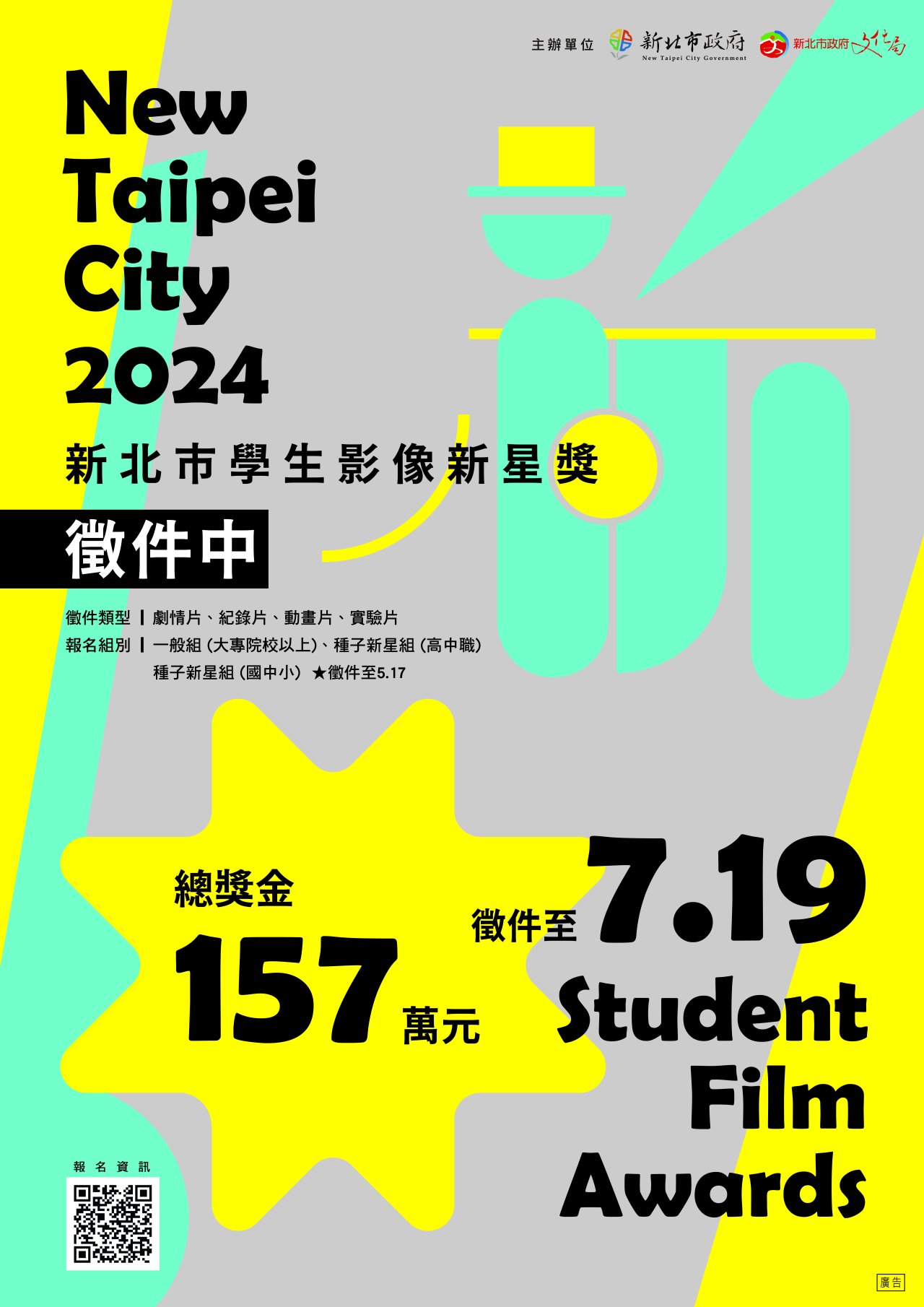 二、 新北市政府為深耕電影藝術,本(113)年度持續辦理「2024新北市學生影像新星獎」,以鼓勵青年學生從事影像創作,培育未來影像創作人才。