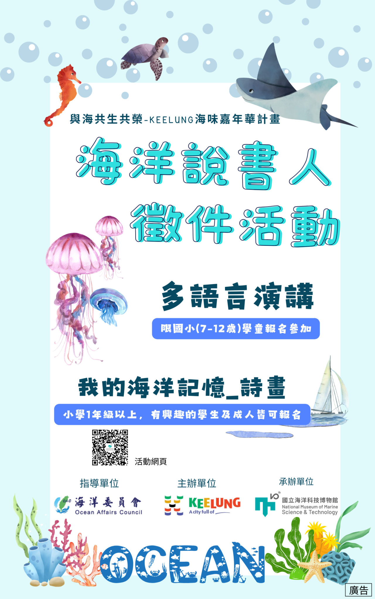 主旨: 轉知基隆市政府教育處及國立海洋科技博物館共同辦理之「Keelung海味嘉年華-海洋說書人」徵件活動資訊一案,詳如說明,請查照。