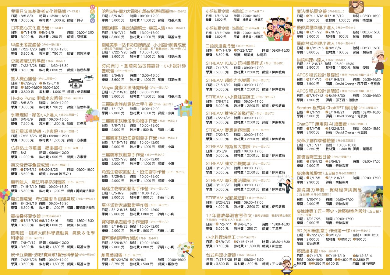 一、 為提倡兒童多元化之學習體驗,本校推廣教育處開設旨揭系列課程,請鼓勵貴校學生踴躍參加。