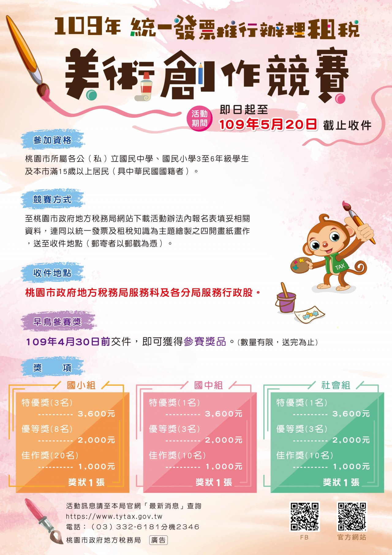 (一)畫作繪製內容:參賽者將統一發票兌獎新制、購物消費索取統一發票、行動支付結合雲端發票、雲端發票自動化對獎、地方稅3大稅(房屋稅、使用牌照稅、地價稅)開徵訊息、便民服務措施、多元化繳稅管道、重要稅制及稅政為主題自訂題目,以繪畫方式呈現。