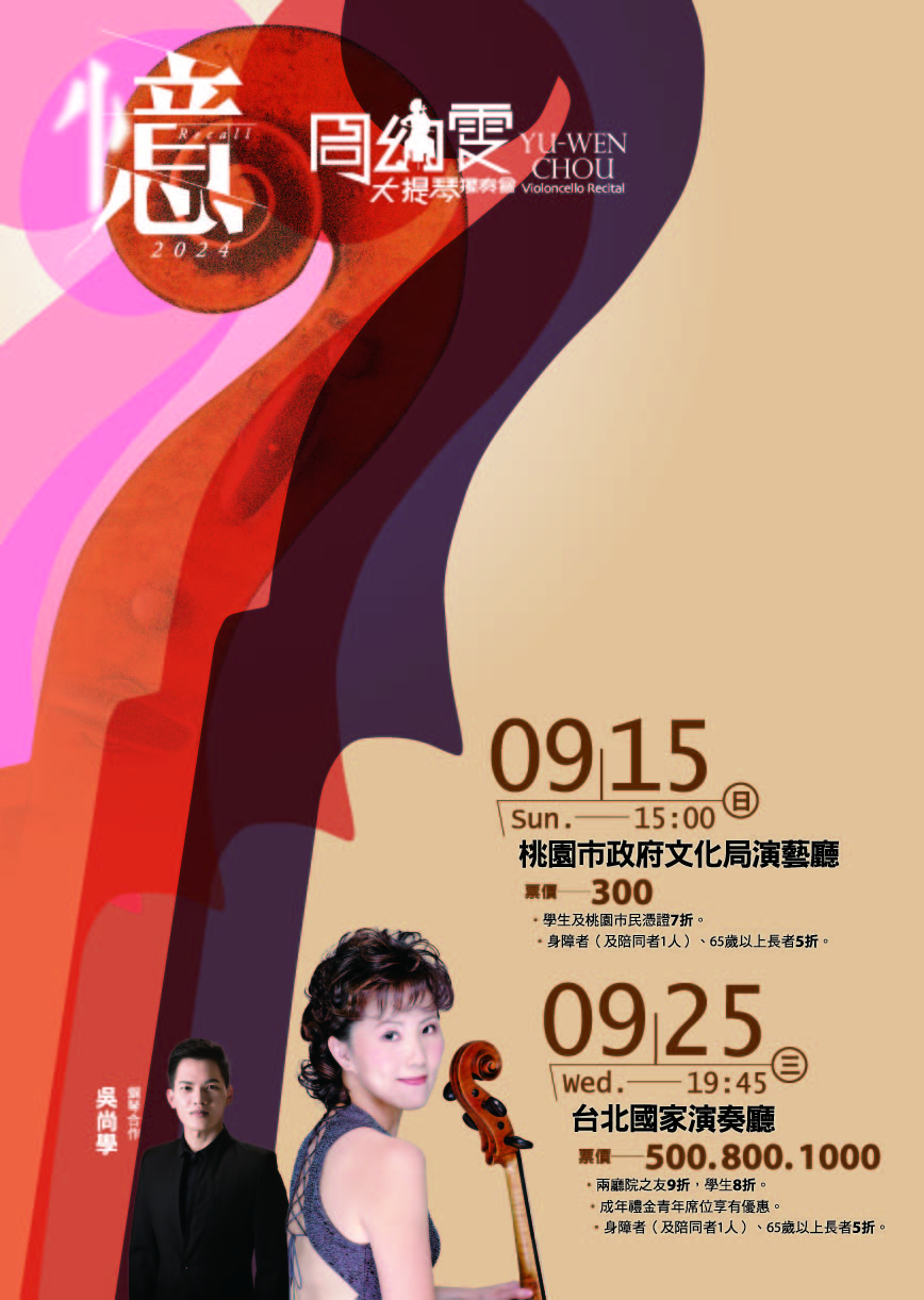 二、 大提琴演奏家周幼雯教授,現職為國家交響管樂團團員,並擔任實踐大學、台北市立教育大學、私立中國文化大學及國立台灣藝術大學等音樂系及研究所兼任教授,並長期於桃園深耕藝術教育推廣。
