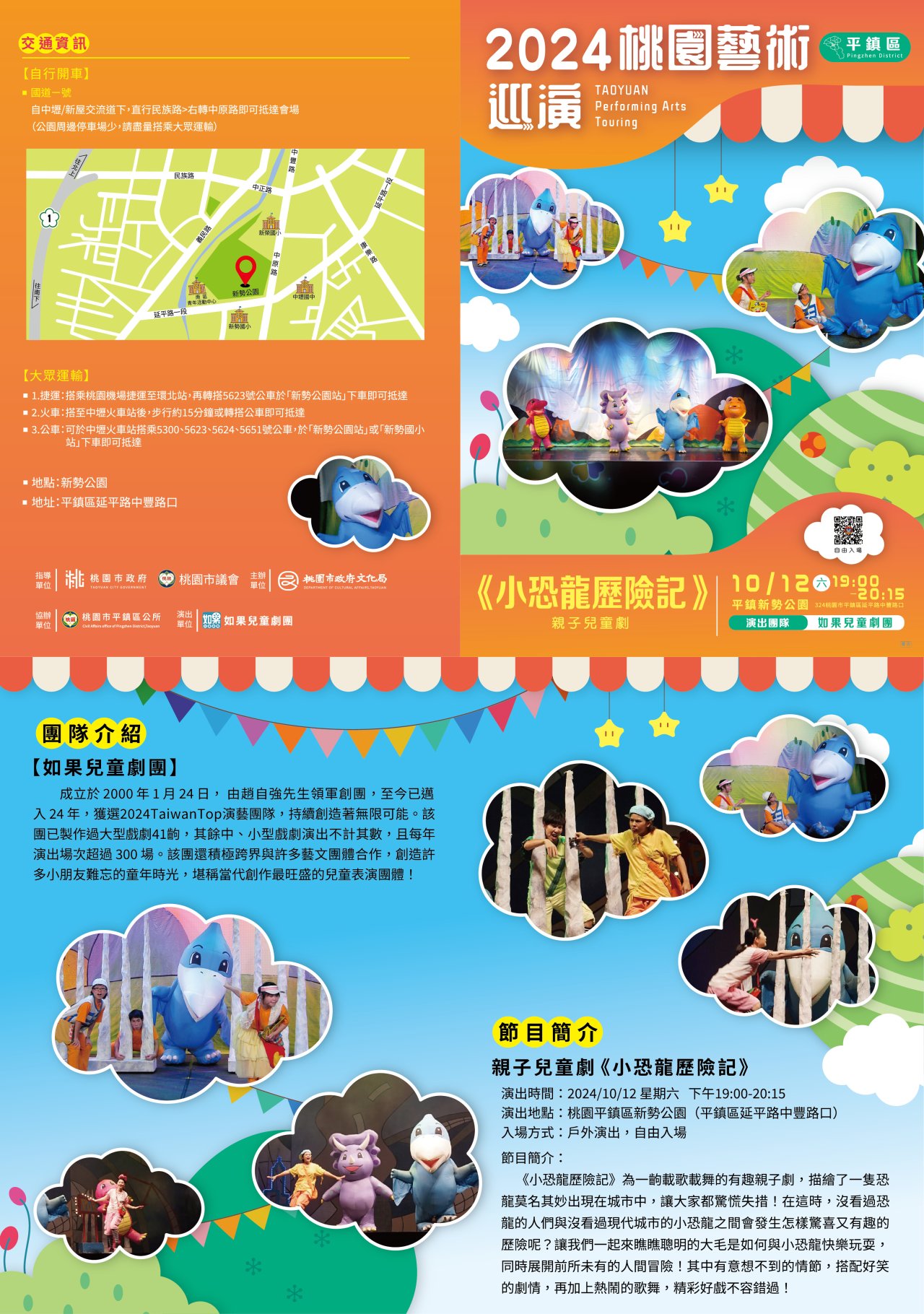 說明: 一、 本案巡演活動113年10月12日(星期六)晚上7時,假桃園平鎮區新勢公園(桃園市平鎮區延平路中豐路口)辦理演出。