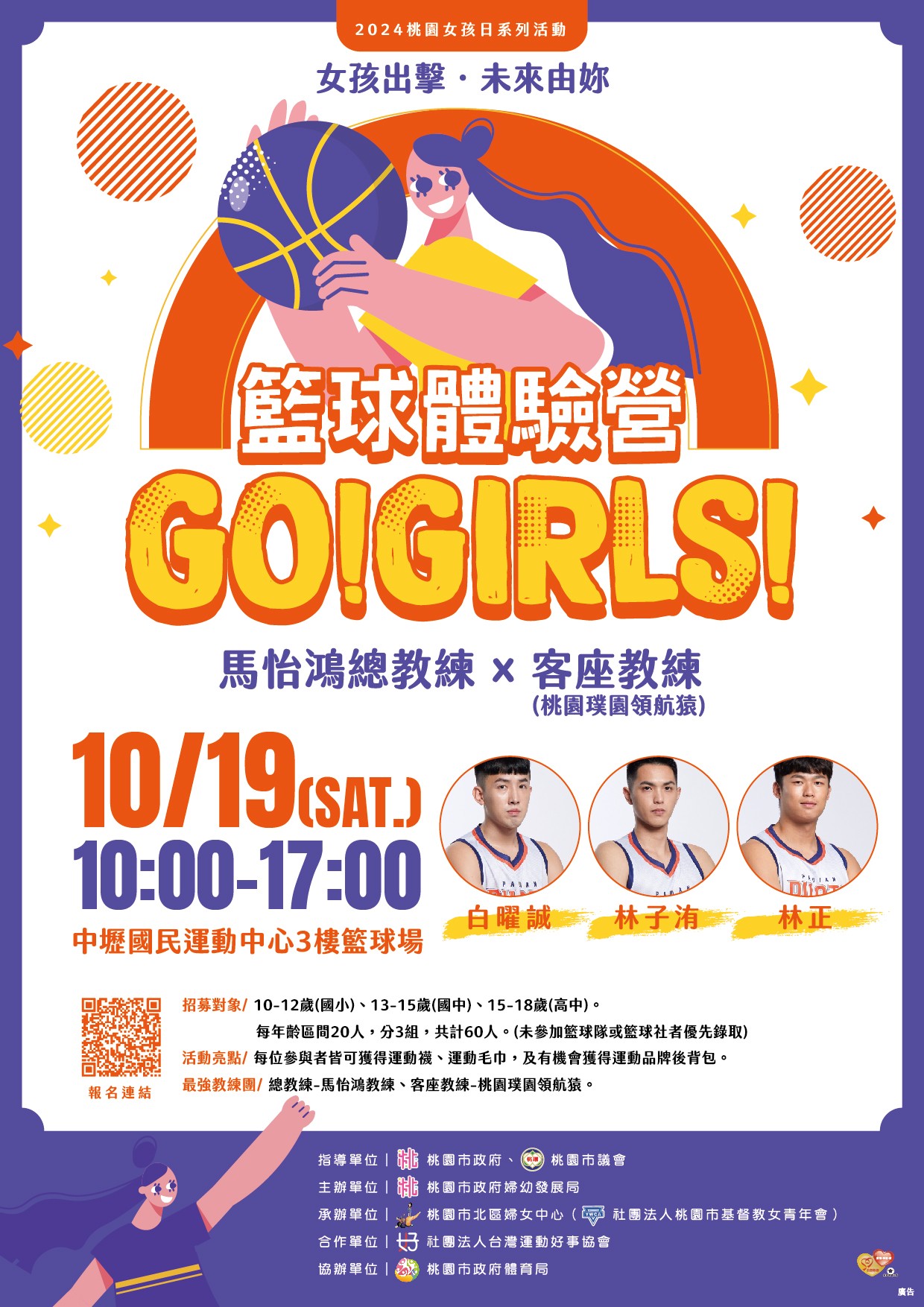 二、為響應聯合國重視投資及培力女孩,讓女孩獲得應有的人權與照顧,並指定10月11日為「國際女孩日」之呼籲,本府婦幼發展局於今( 113)年以「運動性別平權」為主軸,消除運動界性別刻板印象,推廣年輕女性參與多元體育活動為目的,辦理桃園女性運動員紀錄片拍攝與首映、女孩運動現況問卷調查、籃球體驗營、運動攝影展等系列活動,以提升女孩權益。