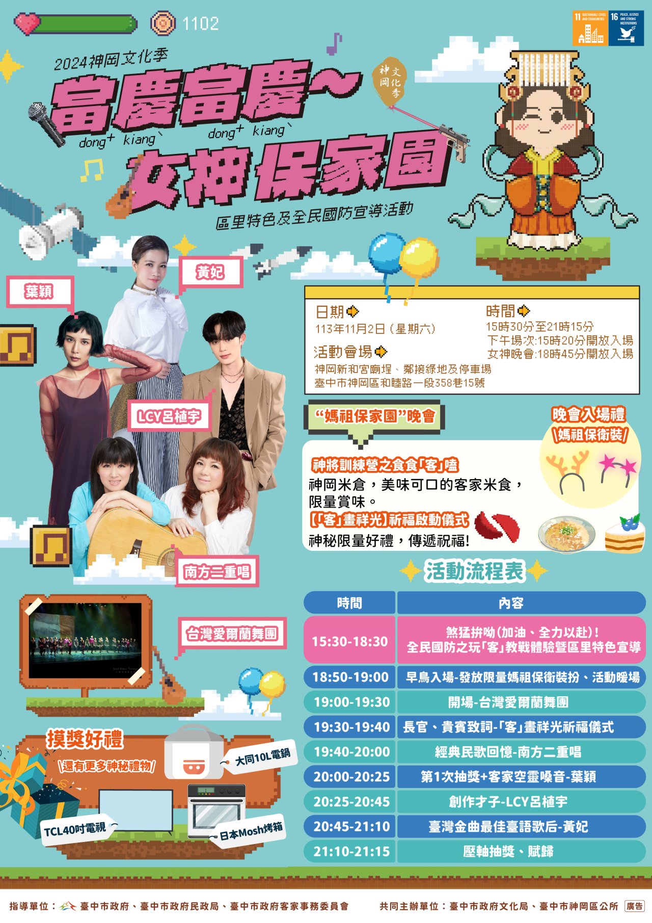 二、 2024神岡文化季壓軸篇章【當慶當慶~女神保家園】區里特色及全民國防宣導活動,詳細資訊如下: