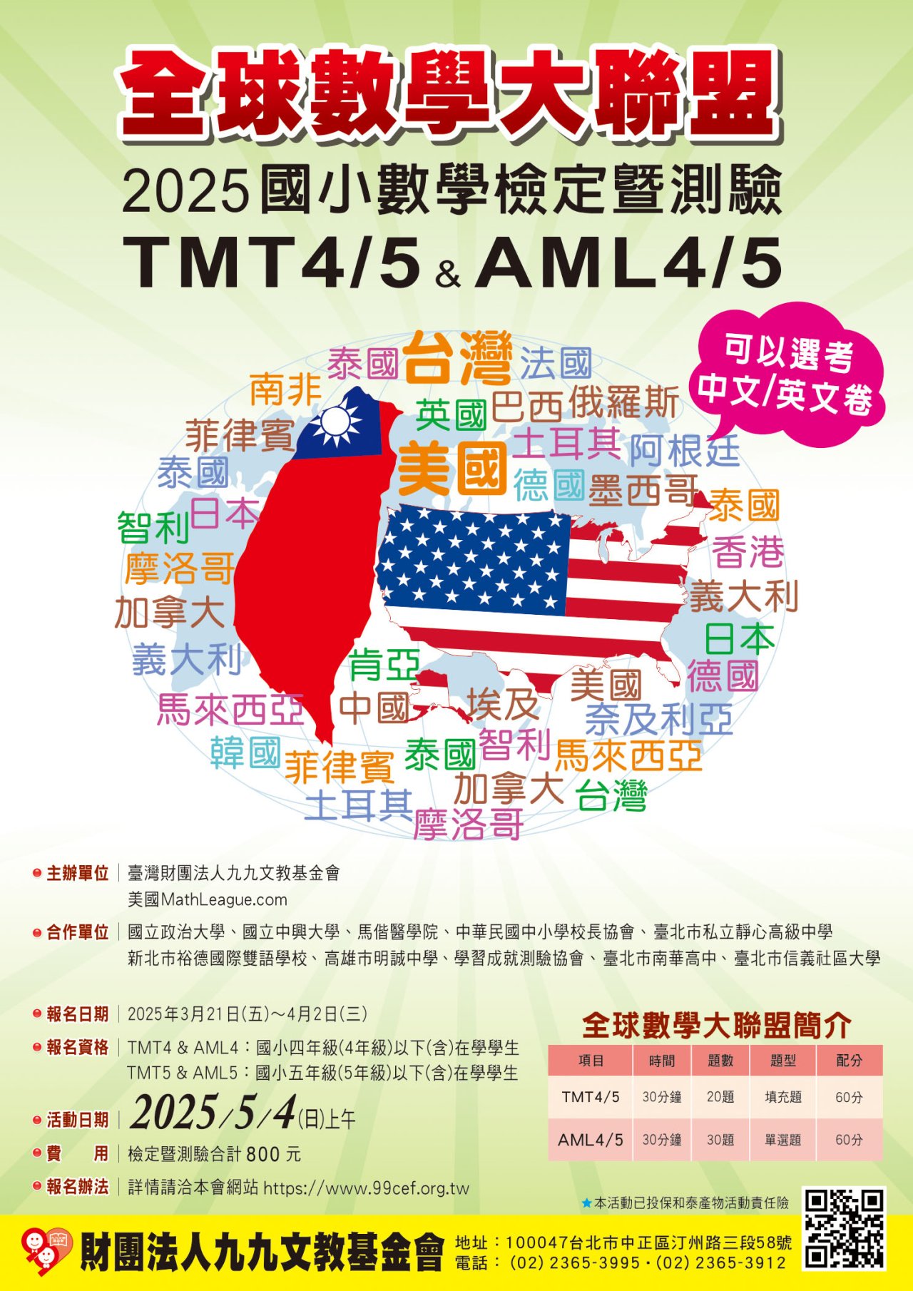 | (二) | AML為美國MathLeague.com所主辦之國際檢測。 |