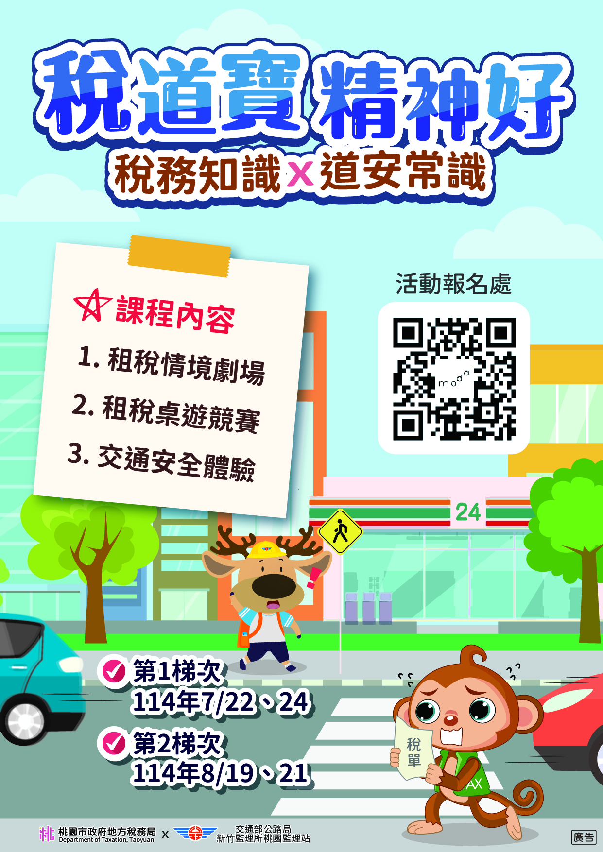 一、 為加深學生族群對雲端發票及租稅常識之了解,強化交通安全意識,本局與交通部公路局新竹區監理所桃園監理站(下稱桃園監理站)共同合作,以設計租稅服務情境劇場並結合租稅桌遊教具,讓學員於演練及遊戲中學習租稅觀念,另安排至桃園監理站全國首座「交通安全教育園區」,實地感受大型車視線死角及內輪差,希冀藉由活動體驗提升租稅與交通素養,營造守法安全好生活。