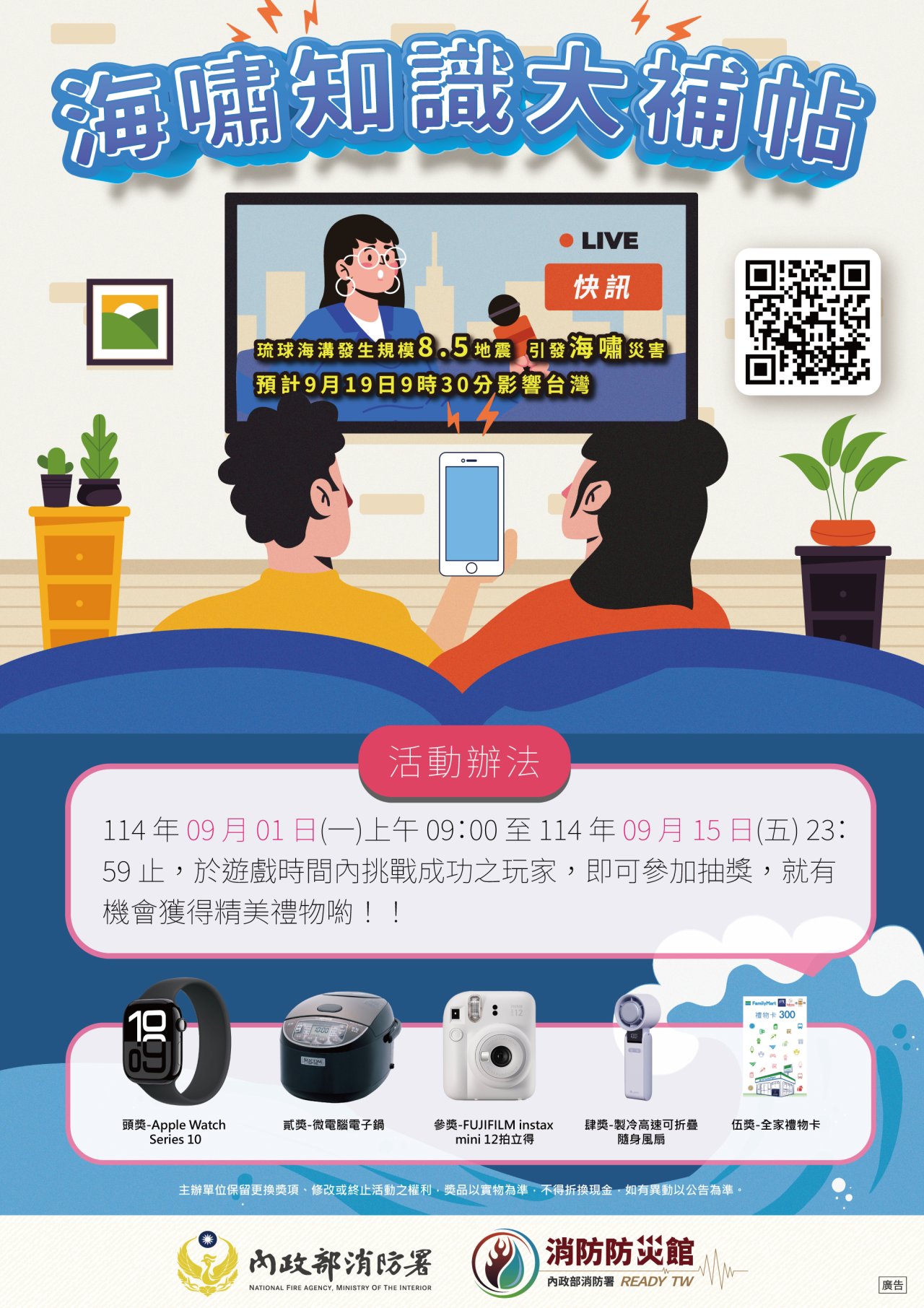 防災遊戲-海嘯知識大補帖抽獎活動。