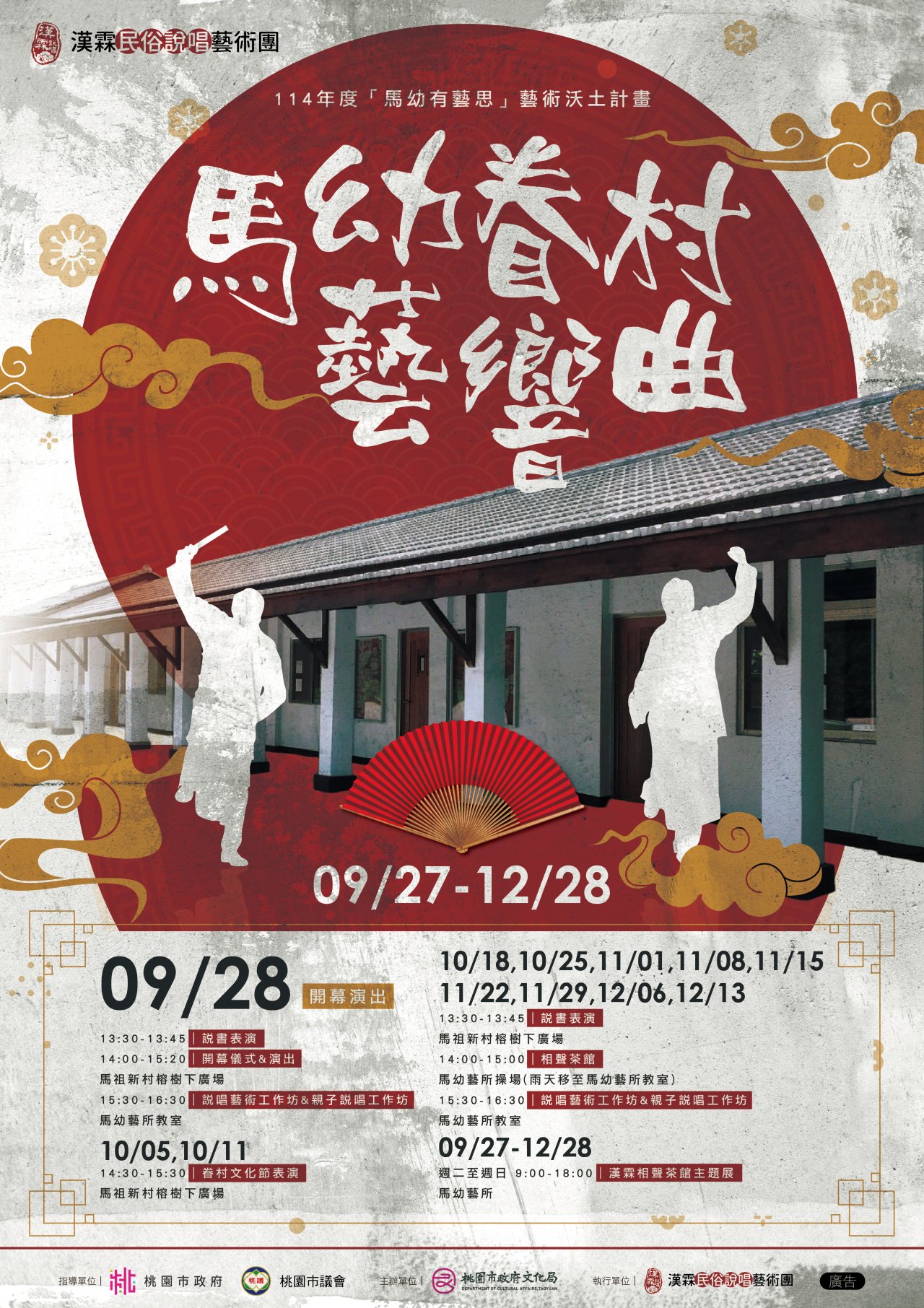 二、 本(114)年度第3期由漢霖民俗說唱藝術團進駐,舉辦「馬幼眷村藝響曲」系列活動,包括:「相聲茶館」展演、說書定期表演、說唱藝術工作坊、親子說唱工作坊及「相聲茶館」主題展(活動內容詳如附件)。
